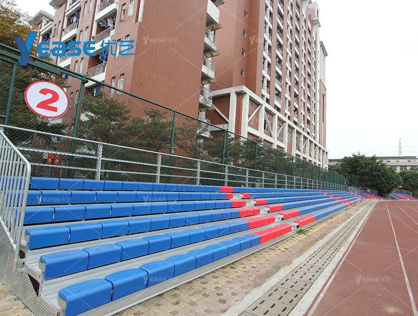 堅固耐用的鋼結構看臺系統(tǒng),滿足戶外場館長期使用與高承載要求。